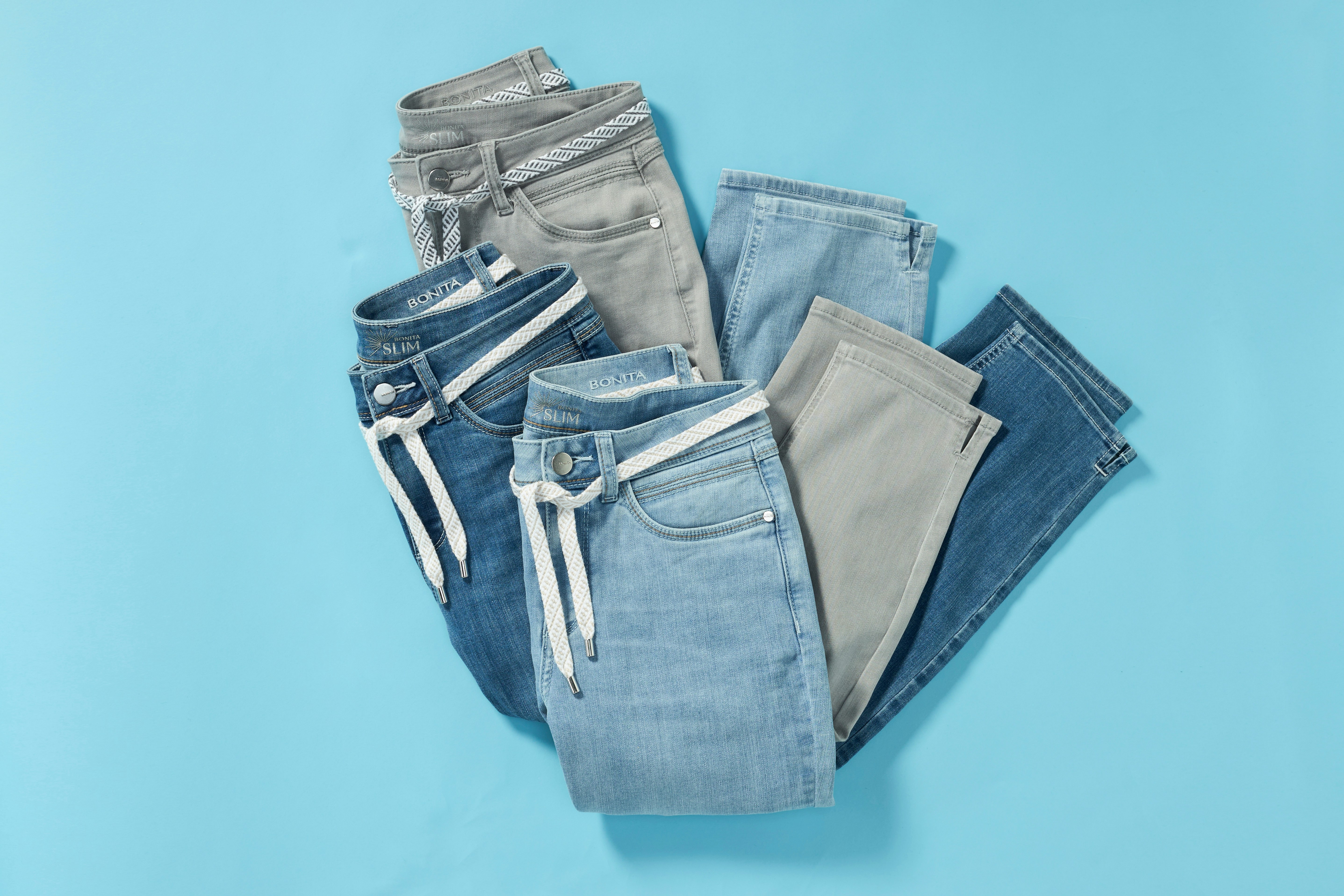 Tauchen Sie ein in eine Welt von Kleidung in vielen Farben aus hochwertigen Materialien in exzellenter Verarbeitung für alle Bedürfnisse Ihrer Altersgruppe und zum fairen Preis. Unsere sorgfältig ausgewählten Artikel in Größen 36 bis 48 stehen für Langlebigkeit und zeitlose Eleganz mit hohem Tragekomfort, unsere Schnitte versprechen Bewegungsfreiheit. Bonita Damenmode begleitet Sie durch Ihren Alltag, ohne Sie einzuengen.