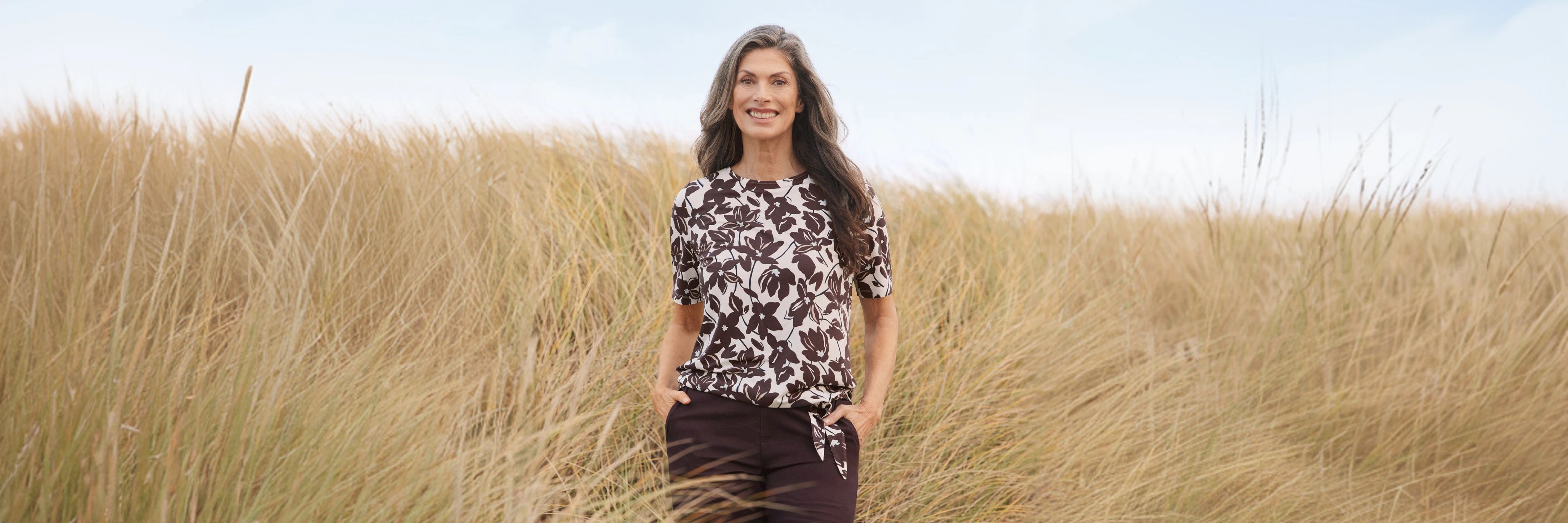 Wie ein Spaziergang durch die Natur – botanische Drucke verleihen Ihrer Kleidung eine sanfte, feminine Ausstrahlung. Entdecken Sie unsere schönsten floralen Highlights der Damenmode.