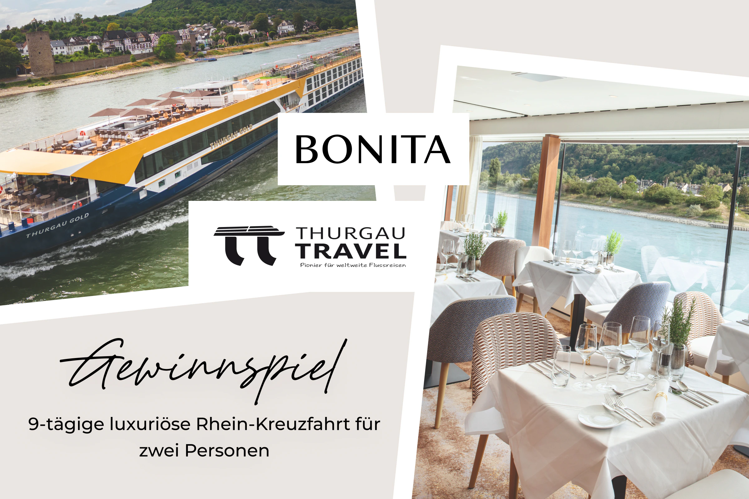 Gewinnen Sie eine 9-tägige luxuriöse Rhein-Kreuzfahrt für zwei Personen auf der MS Thurgau Gold in einer Mitteldeck-Kabine mit französischem Balkon – inklusive Vollpension, Getränkepaket und Ausflugspaket.