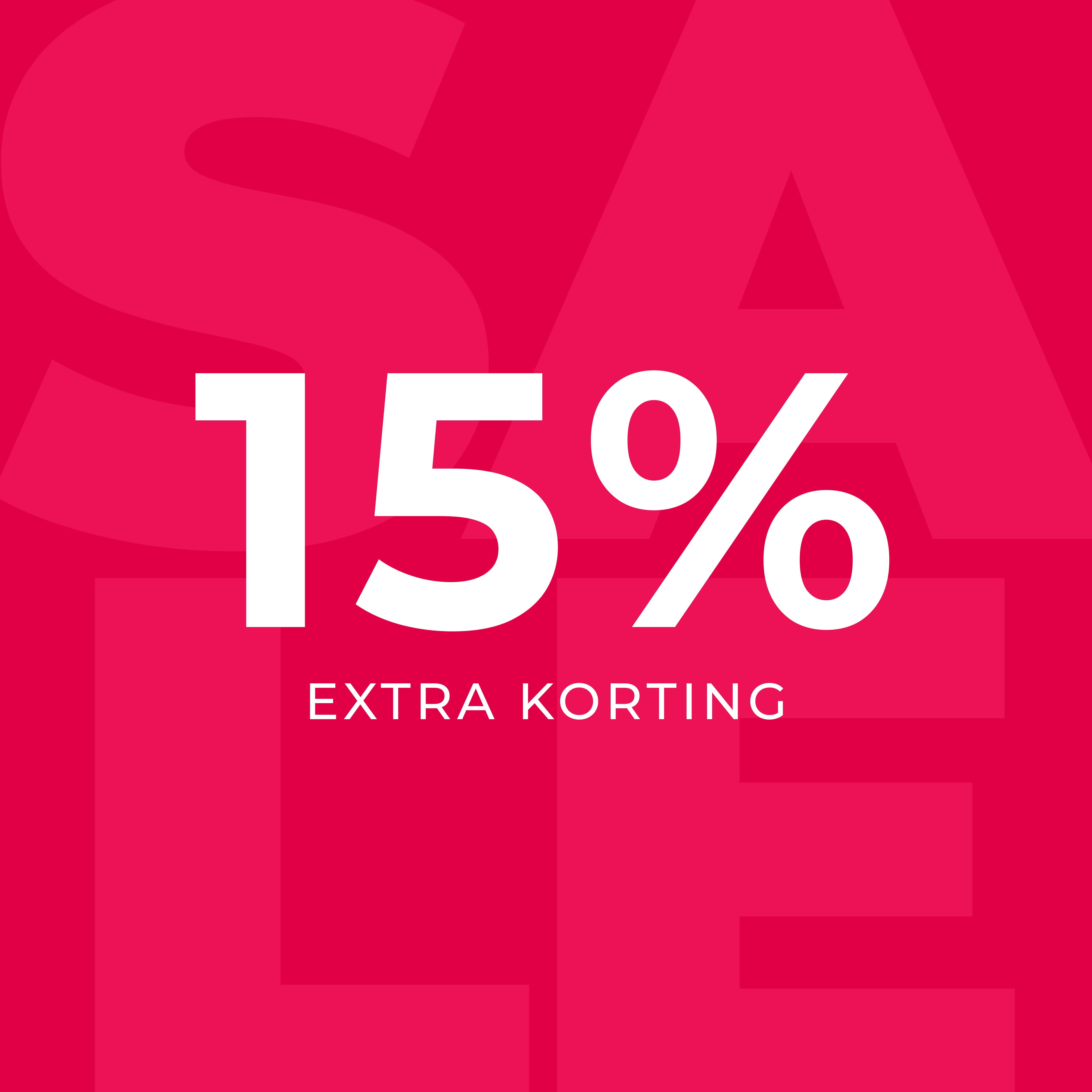 *Opmerking over de actie: geldig van 17-02-2026 tot 20-02-2026 op alle outletartikelen, met invoer van de kortingscode CHANCE15 in het winkelmandje. Niet cumuleerbaar met andere acties/tegoedbonnen.