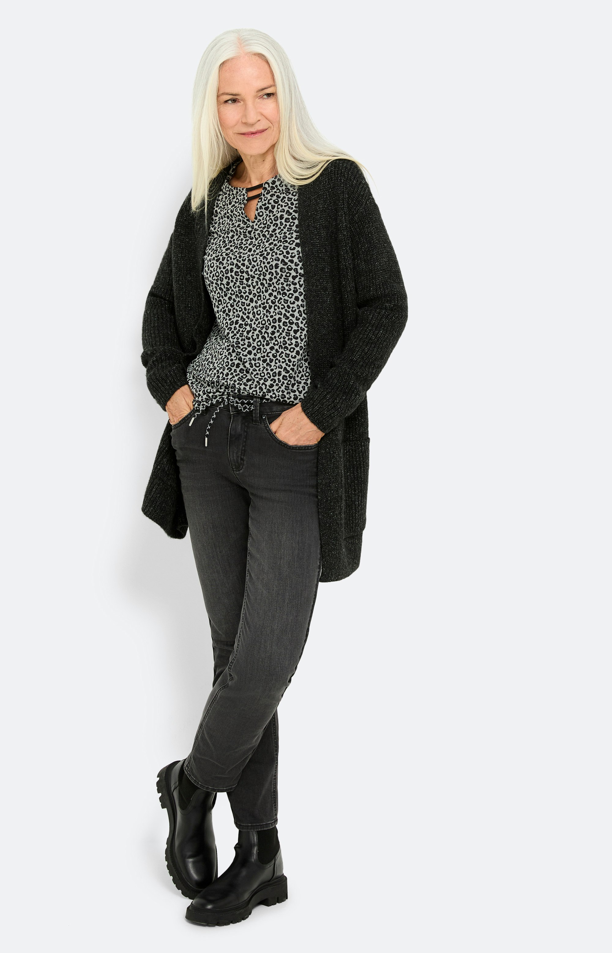Open cardigan met zakken, antraciet