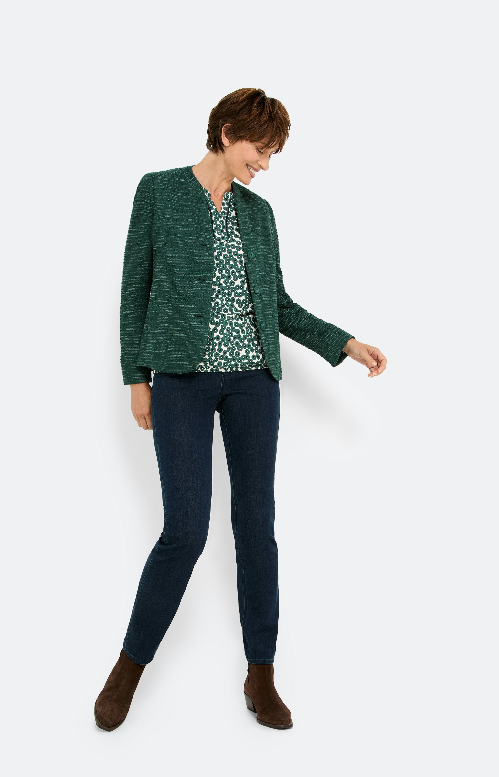 Shop the look Shirt met motief, donkergroen 49,99 € forest green minimal design Details Maat S M L XL XXL Jeans, straight fit 32 inch, donkerblauw 89,99 € dark blue denim Details Maat 36 38 40 42 44 46 48 Bouclé-blazer met structuur, donkergroen 99,99 € forest green Details Maat 36 38 40 42 44 46 48 Ontdek meer looks