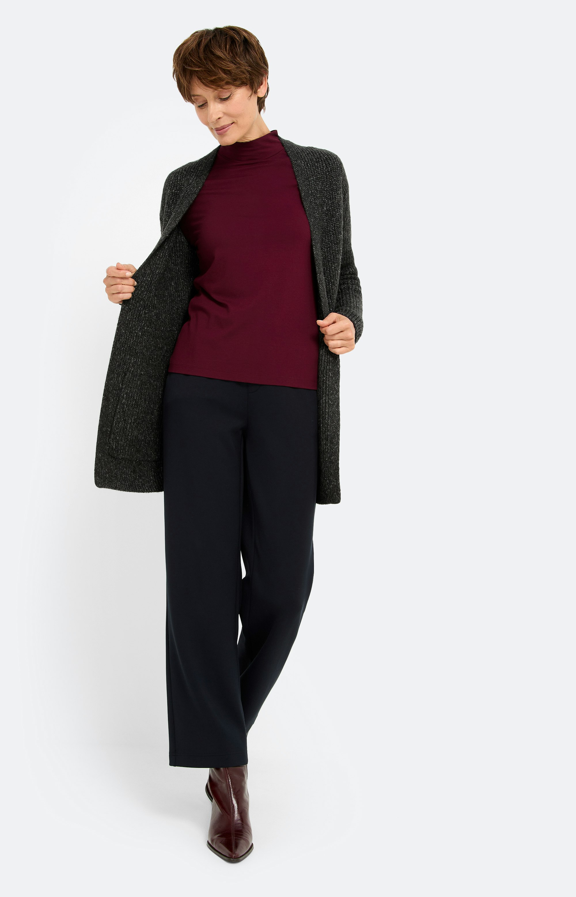 Terug Start Inspiratie Advies Shop the look Terug Start Inspiratie Advies Shop the look Shop the look Inspiratie uit de collectie "Animal Grays" Open cardigan met zakken, antraciet 89,99 € dusty anthracite melange Details Maat S M L XL XXL Jeans, straight fit 32 inch, donkerblauw 89,99 € dark blue denim Details Maat 36 38 40 42 44 46 48 Shirt met lange mouwen, bourgondië 45,99 € pure burgundy Details Maat S M L XL XXL Ontdek meer looks