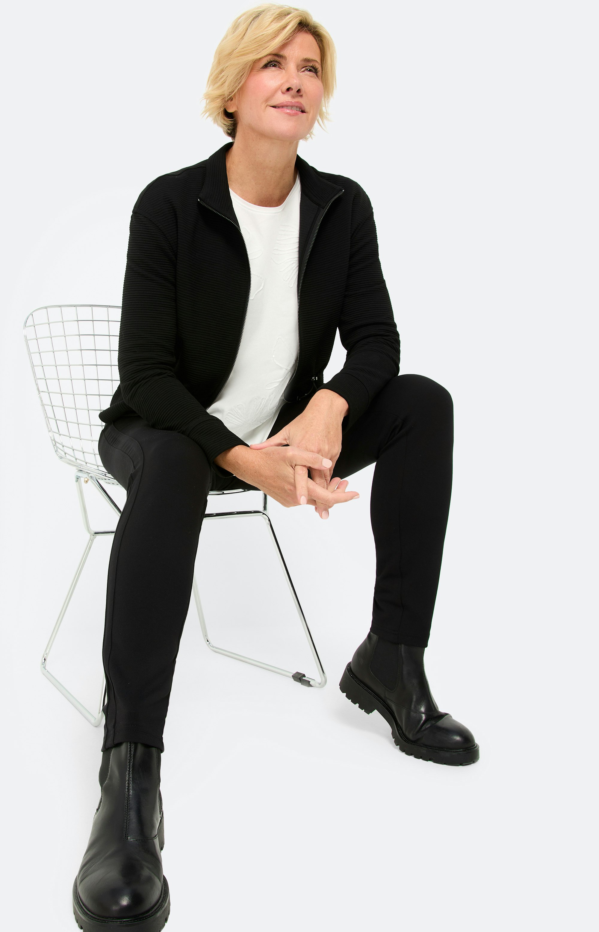 Terug Start Inspiratie Advies Shop the look Terug Start Inspiratie Advies Shop the look Shop the look Inspiratie uit de collectie "Golden Glam" Shirt met bloemenapplicatie, wit 49,99 € white decorated cord petals Details Maat S M L XL XXL Broek met tunnelkoord 30 inch, zwart 79,99 € Deep Black Details Maat 36 38 40 42 44 46 48 Sweatvest met rijgkoord, zwart 79,99 € Deep Black Details Maat S M L XL XXL Ontdek meer looks