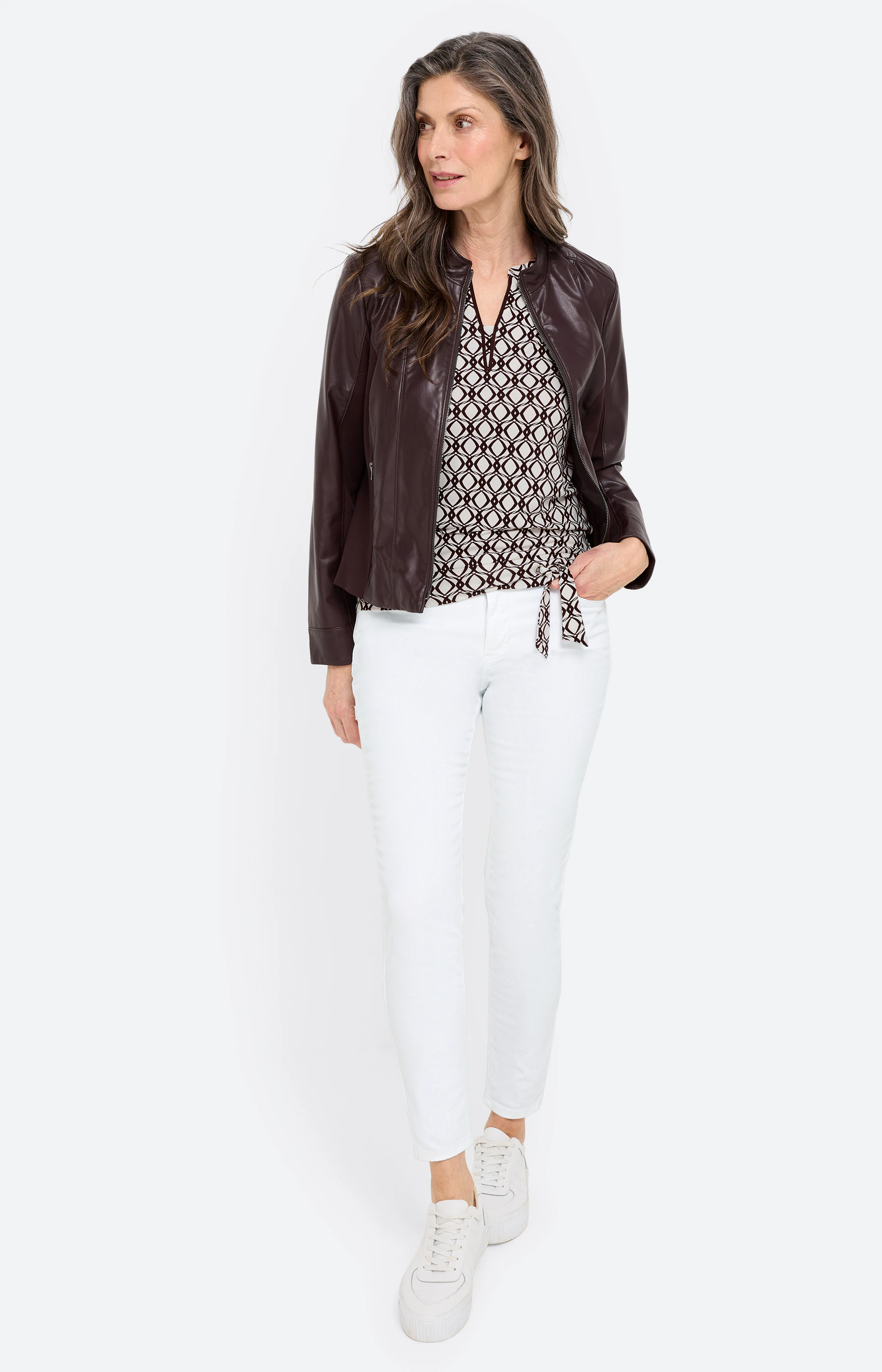 Terug Start Inspiratie Advies Shop the look Terug Start Inspiratie Advies Shop the look Shop the look Inspiratie uit de collectie "Modern Edition" T-shirt met grafisch motief, donkerbruin 49,99 € dark espresso diamond design Details Maat S M L XL XXL Jeans Dana in slim fit 28 inch, wit 89,99 € White Denim Details Maat 36 38 40 42 44 46 48 Jas van imitatieleer, donkerbruin 129,99 € espresso brown. Details Maat 36 38 40 42 44 46 48 Ontdek meer looks
