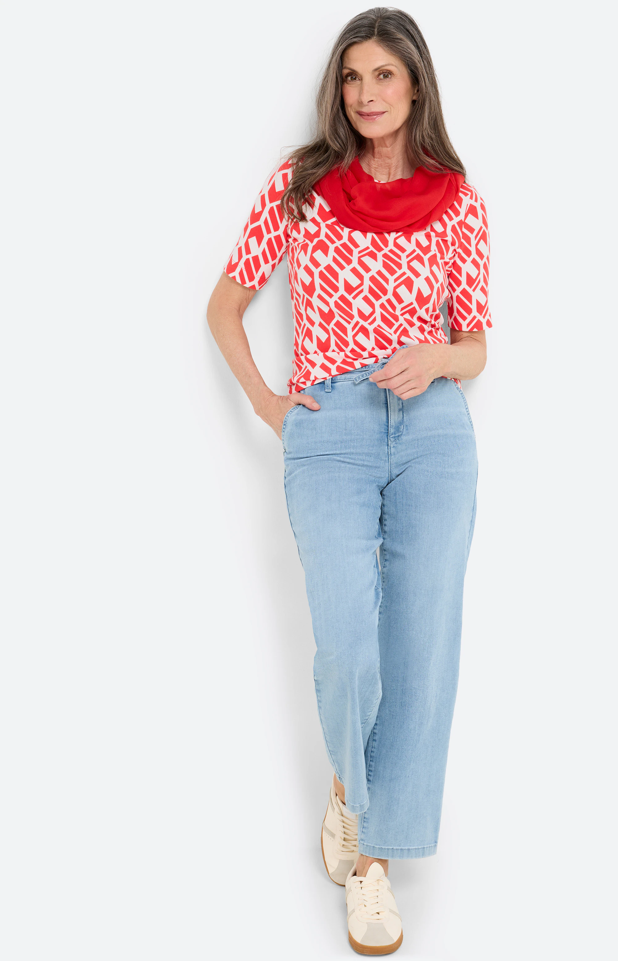 Terug Start Inspiratie Advies Shop the look Terug Start Inspiratie Advies Shop the look Shop the look Inspiratie uit de collectie "Harbour Mood" T-shirt met grafisch motief, rood 45,99 € strong red midi diamond design Details Maat S M L XL XXL Sjaal in coldesign, rood 15,99 € Strong Red Details Maat ONESIZE Jeans, wijde pijpen 30 inch, lichtblauw 89,99 € Clean Bleached Blue Denim Details Maat 36 38 40 42 44 46 48 Ontdek meer looks