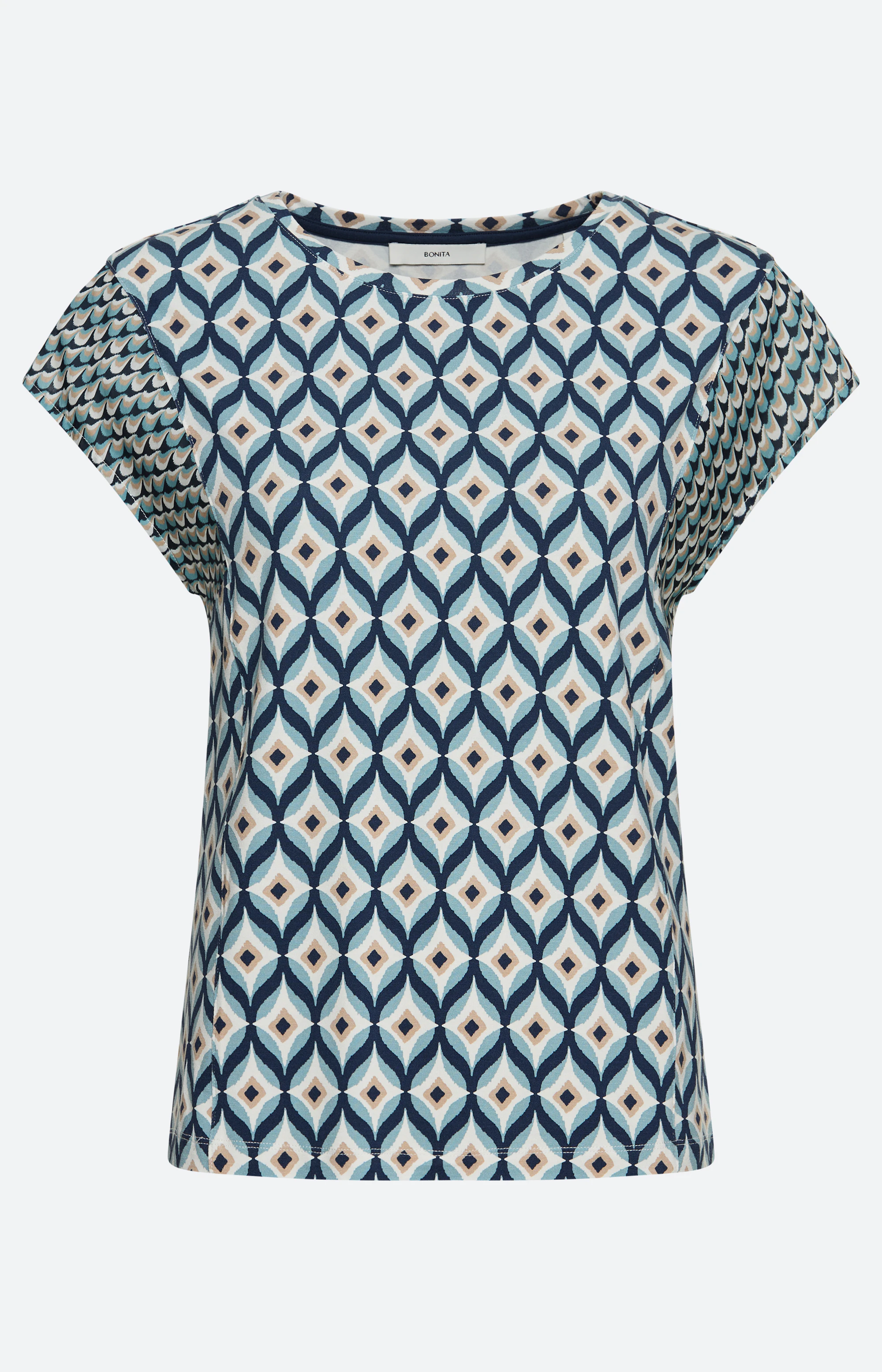 T-shirt in materialenmix, blauw T-shirt in materialenmix, blauw